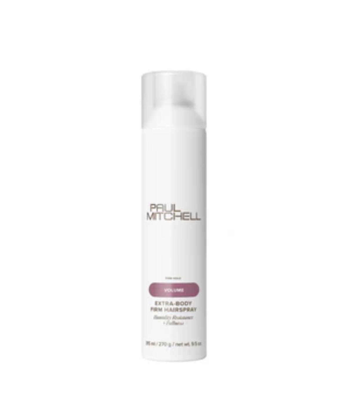 Give your hair a strong lift with Paul Mitchell Extra-Body Firm Hairspray. This intense hairspray contains thickening agents and humidity-resistant ingredients that grip every strand to create volume and texture with real staying power. Provides all-day hold and maximum volume with high shine, fullness and texture, and fights frizz in any climate.