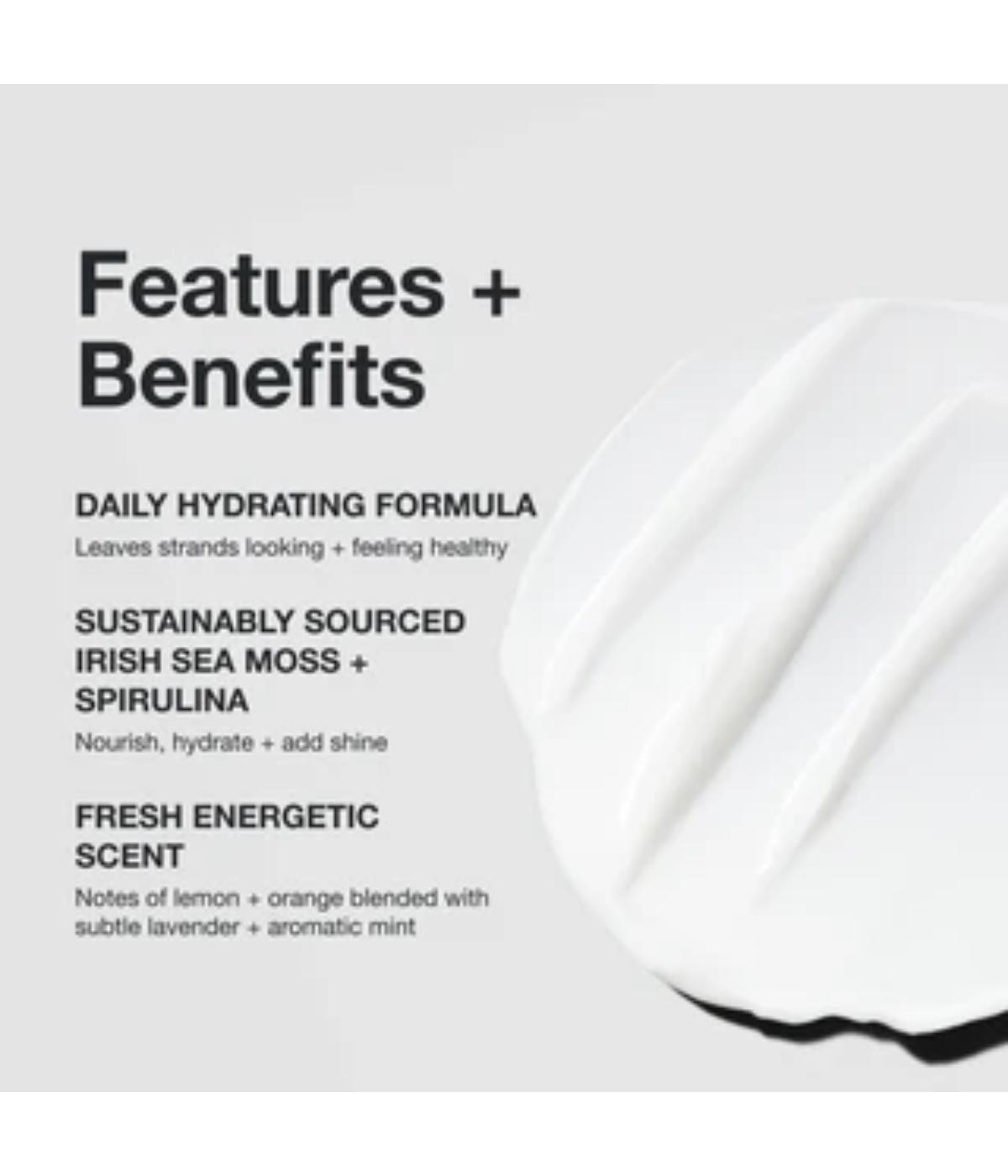 Moisturizing conditioner infused with sustainably sourced Irish sea moss and spirulina hydrates and revives dry hair while boosting shine and helping to prevent damage.