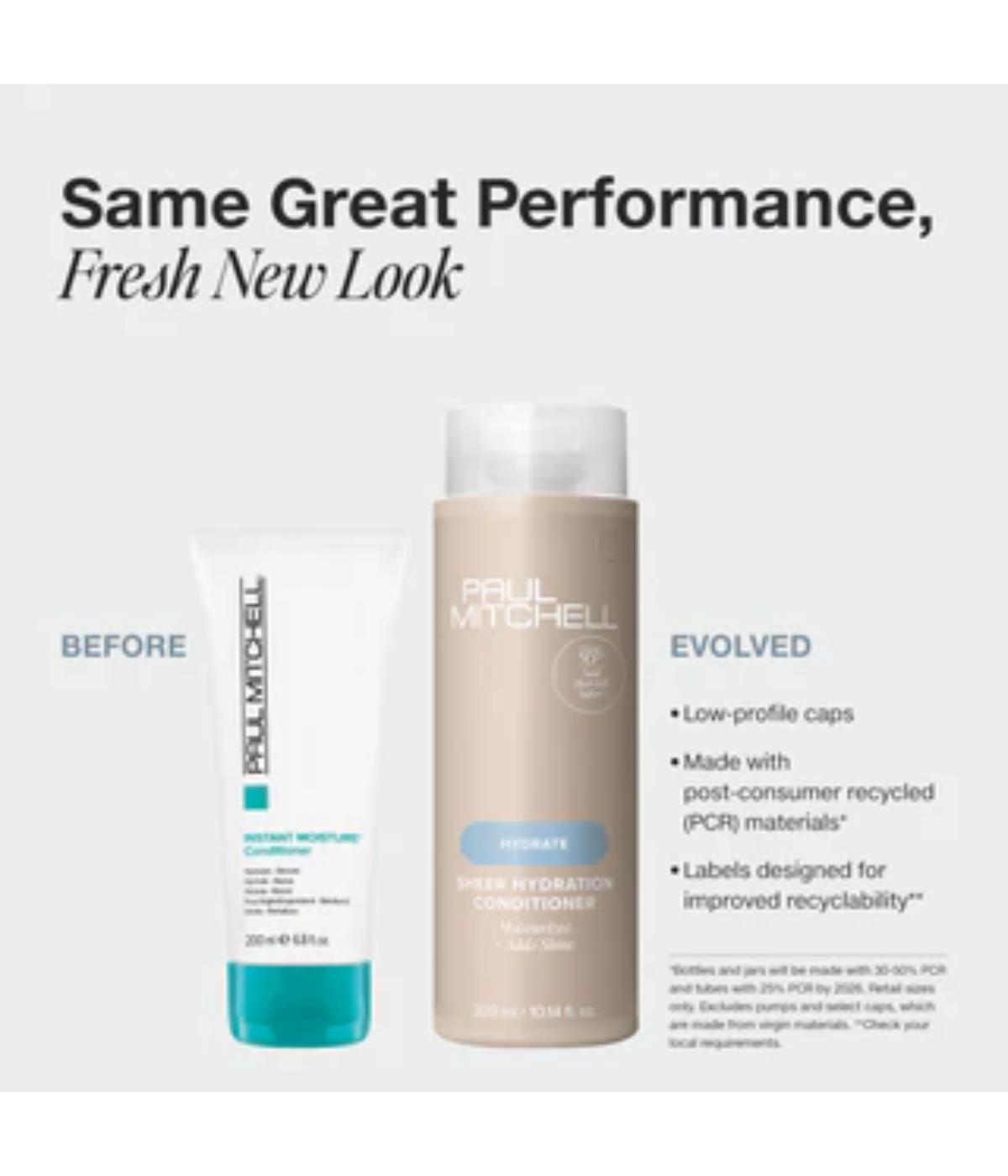 Replenish dry hair with the ideal dose of moisture. Infused with more sustainably sourced Irish sea moss and spirulina, Paul Mitchell Sheer Hydration Conditioner hydrates and revives dry hair while boosting shine and helping to prevent damage. This moisturizing conditioner leaves strands looking and feeling soft and healthy.